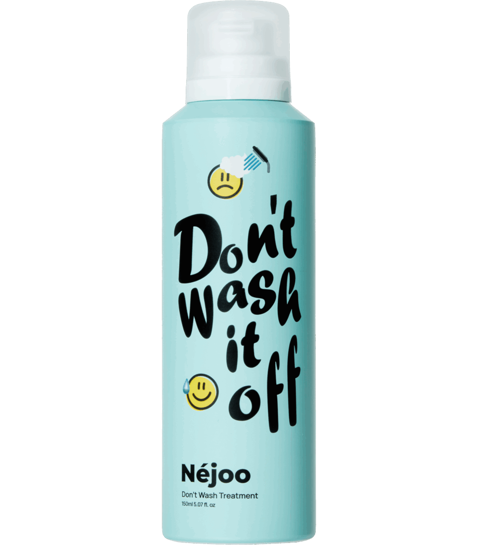 コチラが韓国アイドルも使っているらしい洗い流さない【Néjoo】の、泡タイプの「ドント ウォッシュ トリートメント 150mL 定価¥3,600(税抜)。天然由来97%で、毛髪にケラチンを満たし脂質膜フィルムでカバー。そこに、キー成分となる天然由来オイルでダブルコーティングし、髪の内側から栄養で満たすんだそうです。ネットとかで買えます。