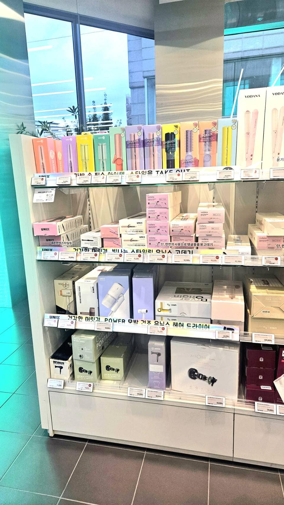 カール用のコテなんかもありますが、わりとストレートアイロンが優先的に陳列されています。