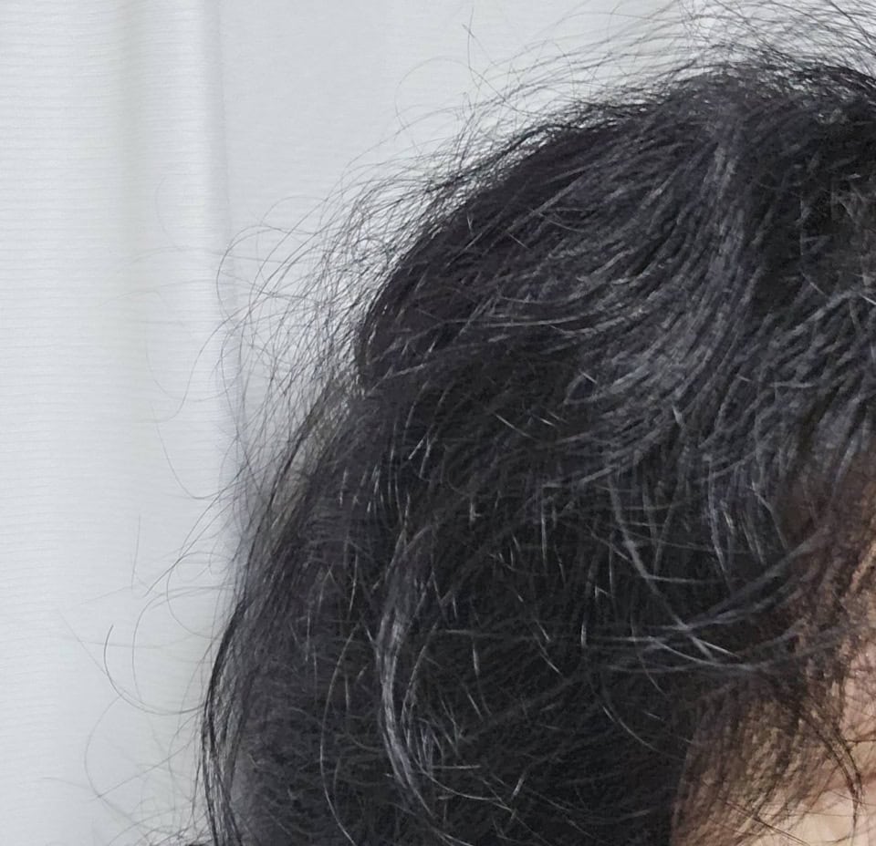 お見苦しくってスイマセンね。普段の朝、起きぬけの髪の基本の質感はこんな感じなんです。使うシャンプーによってはもっとパサつく朝もあります。ボサボサ。いやよねえ、髪って年齢が本当に出るパーツです。