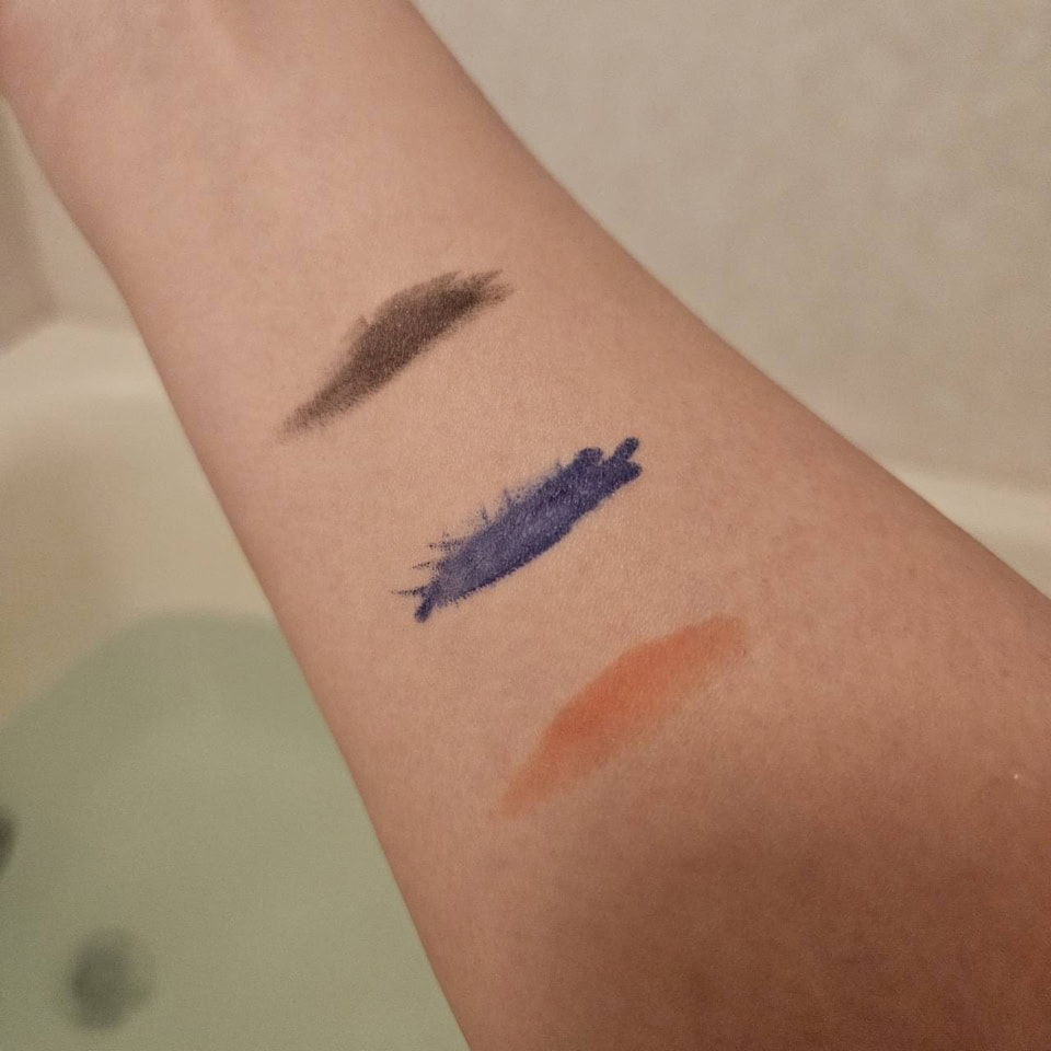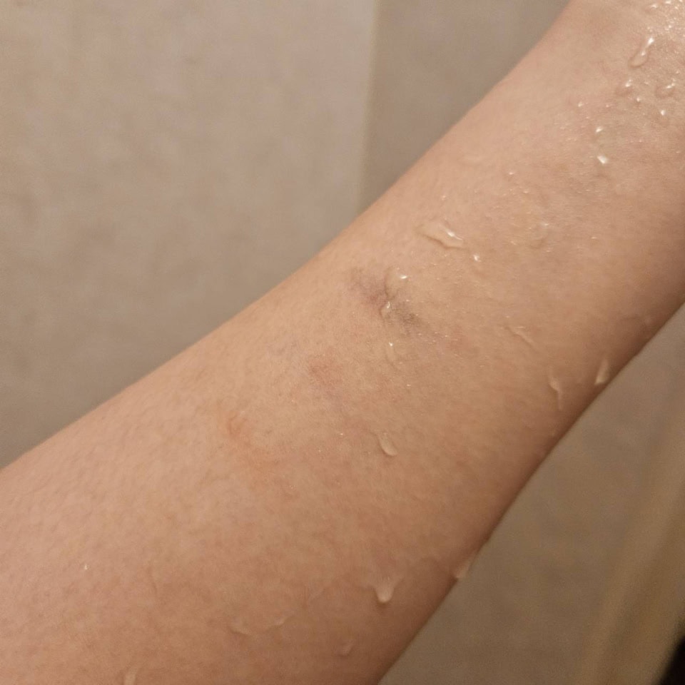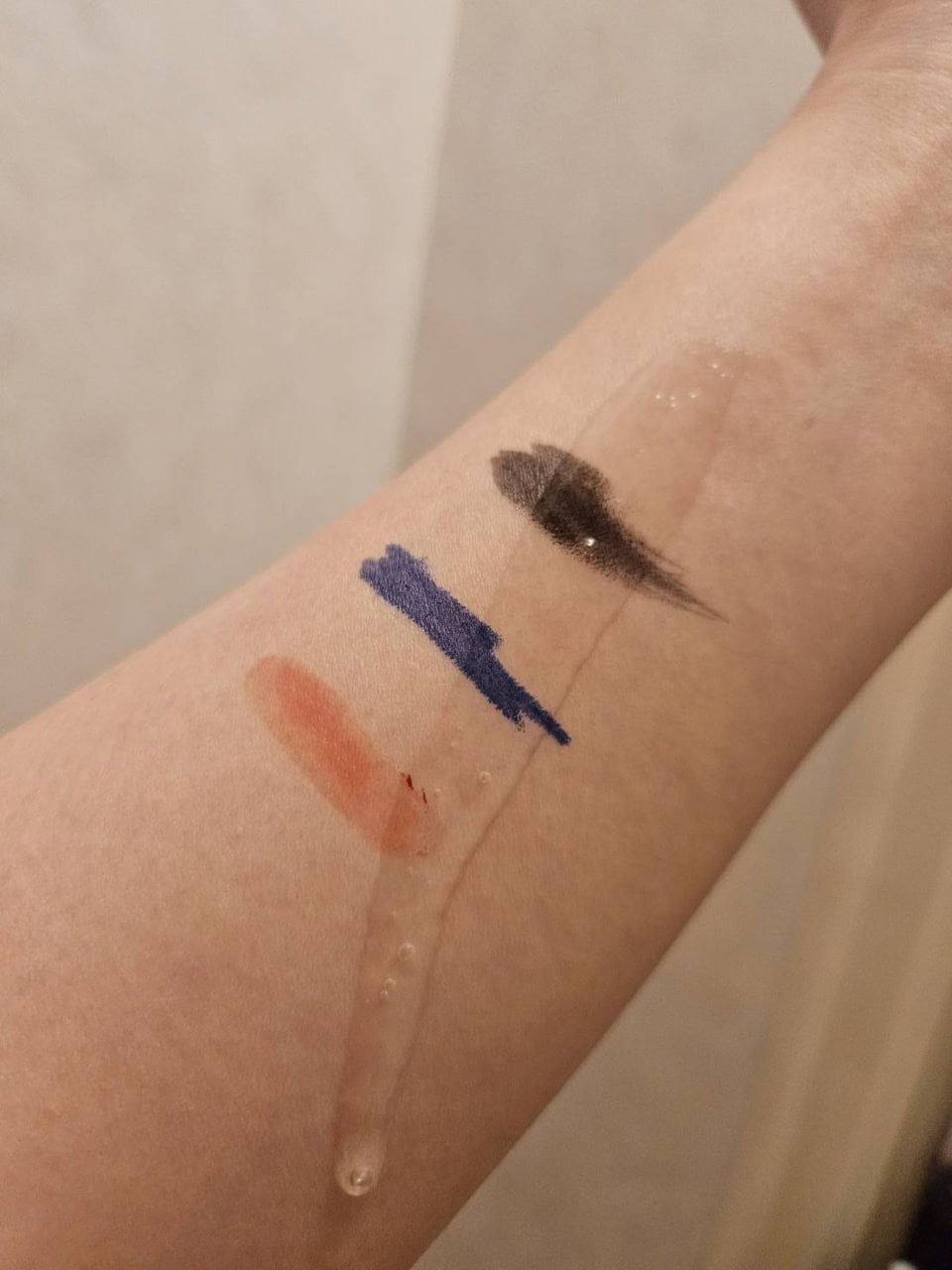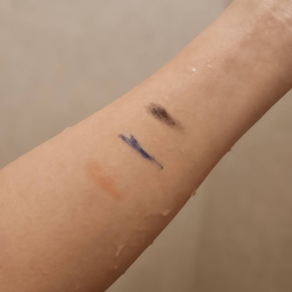 【ジェルクレンジングのみ】比較がこちら。墨、水性顔料マーカー、ティントリップ全て居残りするというまさかの事態に。翌日腕まくりした瞬間、ちょっと恥ずかしかったです。