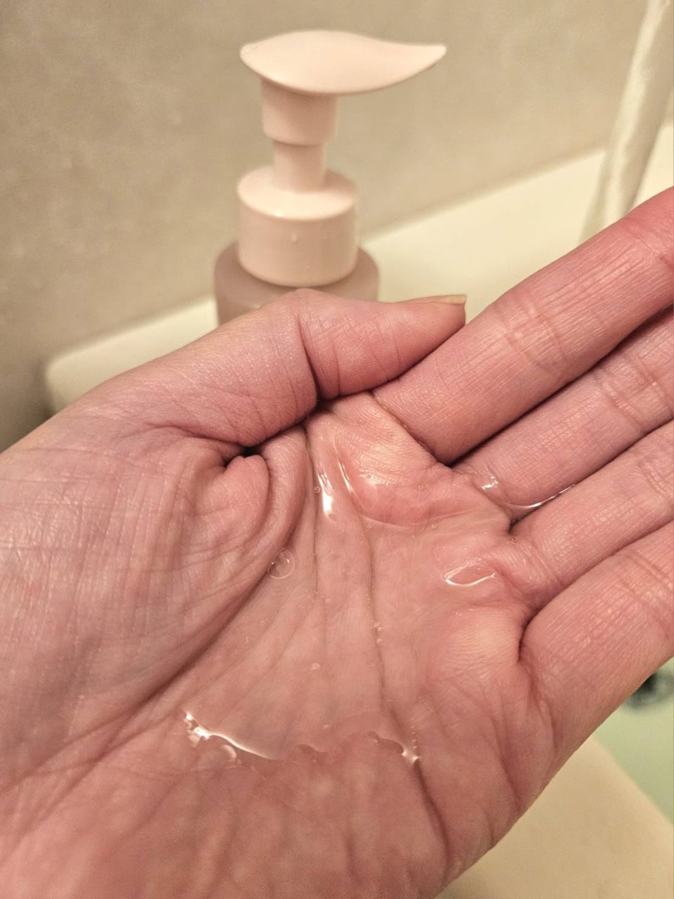 質感はとろっと透明。ヌルヌルする感じです。オイルのようではあるけれど確かに油性は感じないんです。不思議。