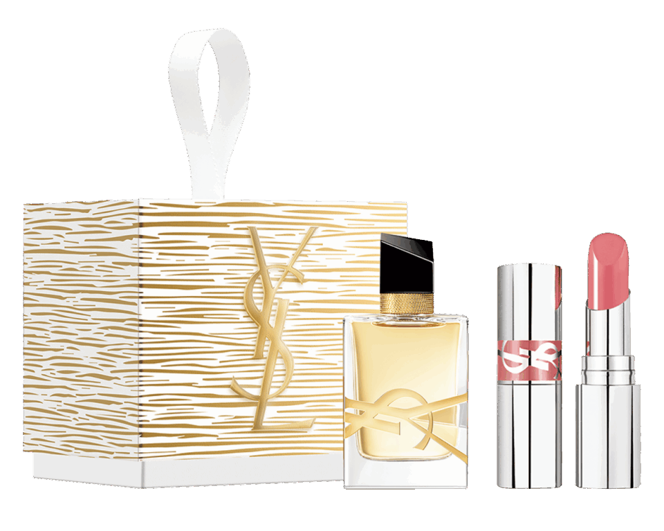 YSLを代表するアイコンアイテムのミニサイズをオーナメントボックスに詰め込んだこちら。ラベンダーとオレンジブロッサムのセクシーでジェンダーレスな香りと、シアーな発色とみずみずしいツヤを放つミルキーピンクの唇で、ホリデーシーズンを盛り上げて。