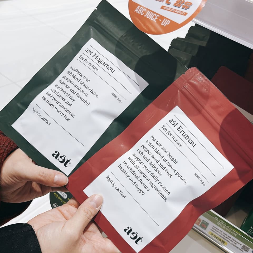 「韓国の有名人がオススメしていて今韓国で人気がある、むくみをとってくれることで話題のお茶です。2種類ありますが、どちらもノンカフェインで、赤はスイートポテト、緑はカボチャがメイン成分。パッケージも可愛くてお土産にもとってもオススメです」(さちこちゃん)
