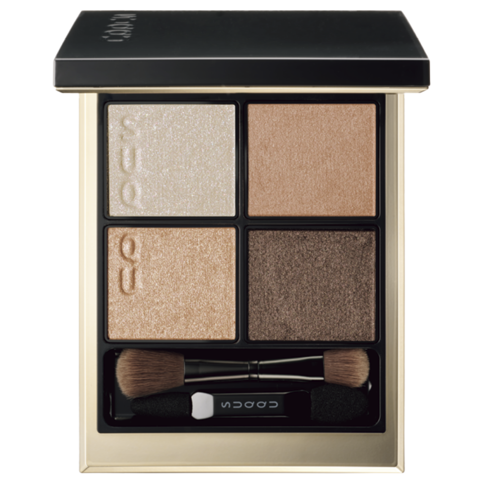 まぶたにピタッと密着するパウダーは薄膜仕上がりながら、洗練の質感で目元を印象的に彩るニュートラルな4色。¥7,700(SUQQU)