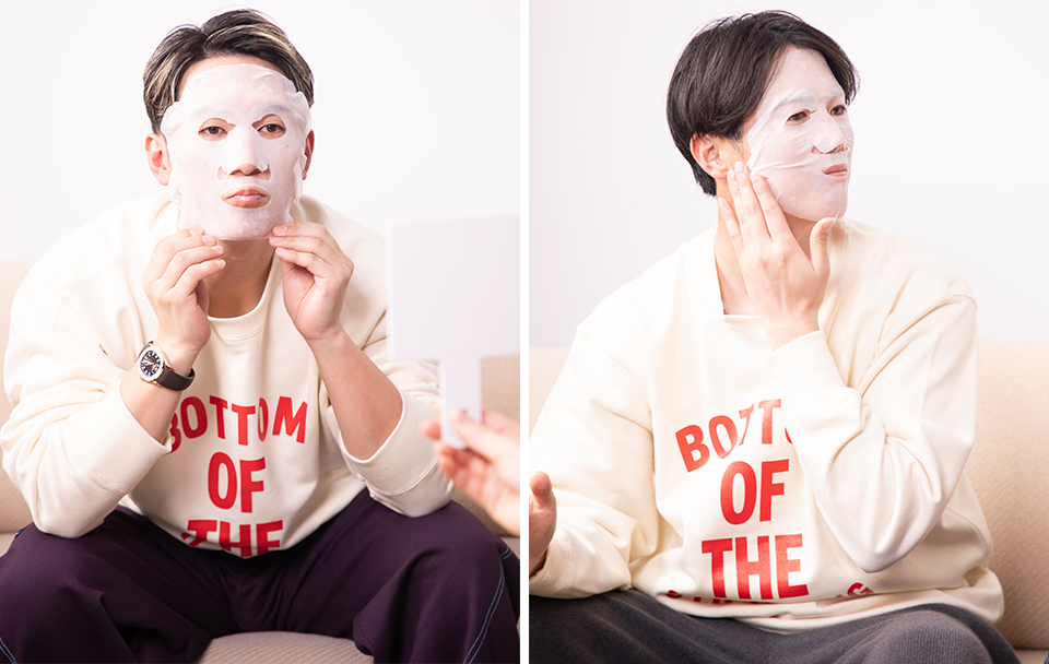 慣れた手つきでシートマスクを貼る2人。
