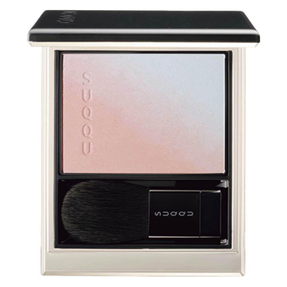 肌に柔らかな血色を添えるコーラルチークと、透明感を引き出すブルーのハイライトのコンビ。頰が透けるような、ピュアで澄んだ表情を簡単に演出できる。¥6,600(SUQQU)