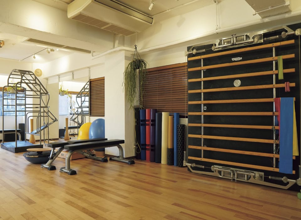 百々さんが通う、ボディトレーナー横手貞一朗氏主宰のトレーニングスタジオ。からだ本来の感覚やリズムを“元の位置”へと導く独自メソッドに、モデルやタレントからの支持も厚い。パーソナルトレーニングのほか、グループレッスンも。
