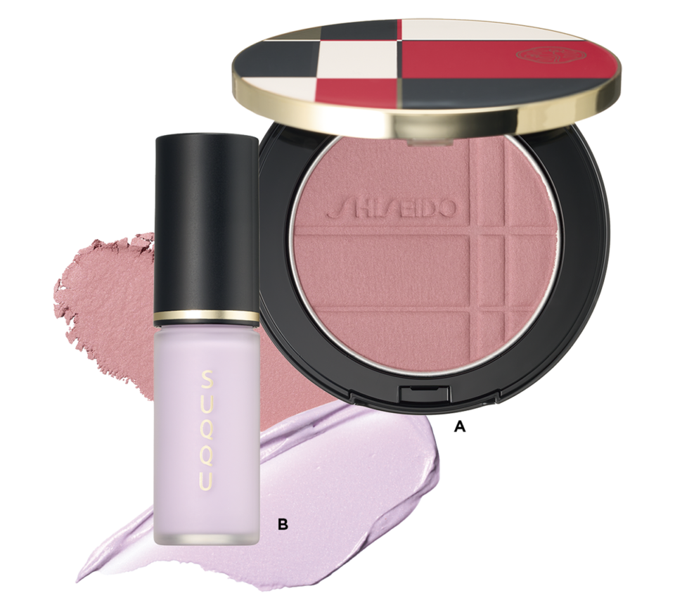 A.SHISEIDOカラー+グロウ エンハンサー 06 ¥6,270(SHISEIDO・3月1日発売) B.SUQQU コンプレクション フェイスカラー 01 ¥4,950(SUQQU)