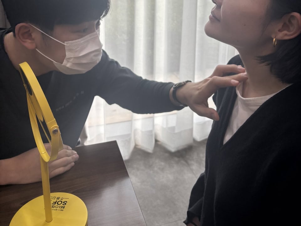キム・ジュハ先生によると、首は皮膚自体が薄いため自然なボリュームを出せる柔らかいタイプのベロテロ(フィラー)を選択しているそう。また、入れたフィラーが定着しやすいよう、その周りにボトックスも打ってもらうことにしました。