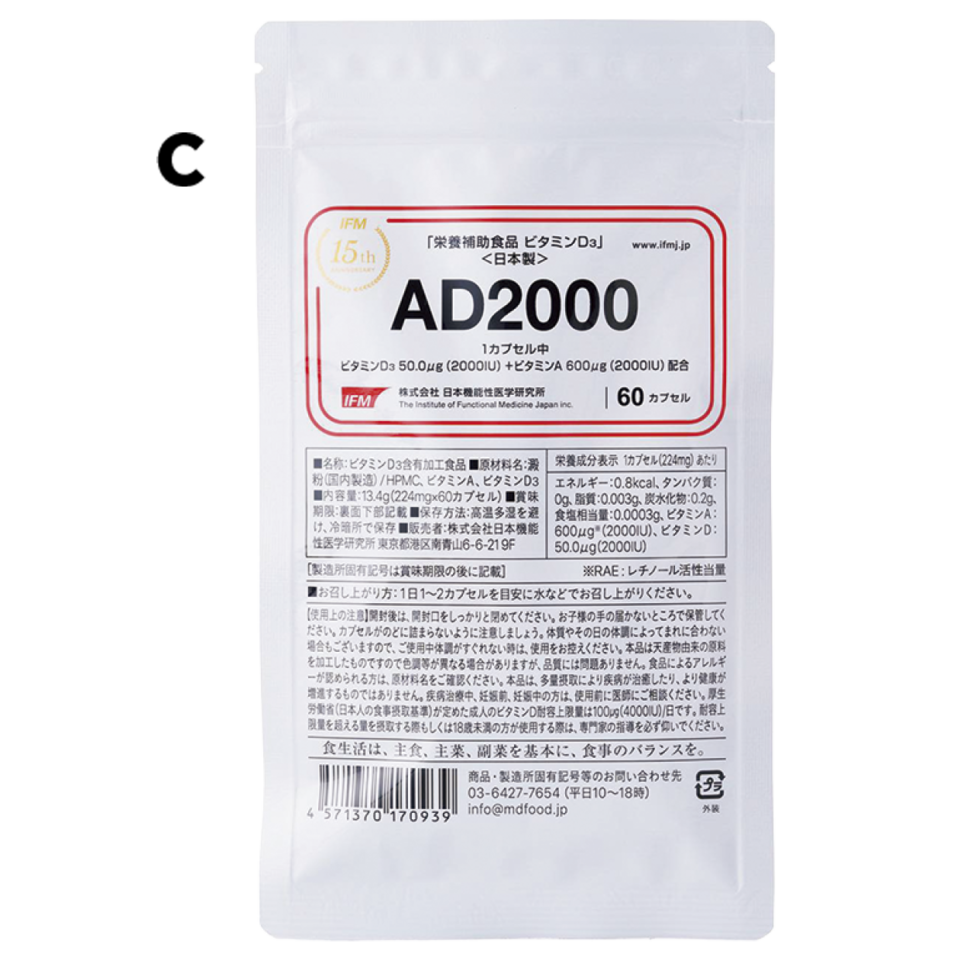 a 女性のホルモンバランスやめぐりをサポートするザクロやメリッサなどを配合。HERBORISTERIE フェムカフェ スウィートベリー 2g×28包 ¥3,888(コスメキッチン) b 若摘みザクロと国産青レモンを長期発酵させた植物エキスの無添加の酵素ドリンク。女性ホルモンに似た働きを持つイソフラボンとエクオールを含有。若榴da檸檬 500mL ¥6,100(言歩木) c 1カプセルにビタミンD3を50μg(2000IU)、ビタミンAを600μg(2000IU)配合。AとDを同時に摂れるサプリメント。AD2000 60カプセル ¥4,320(日本機能性医学研究所)