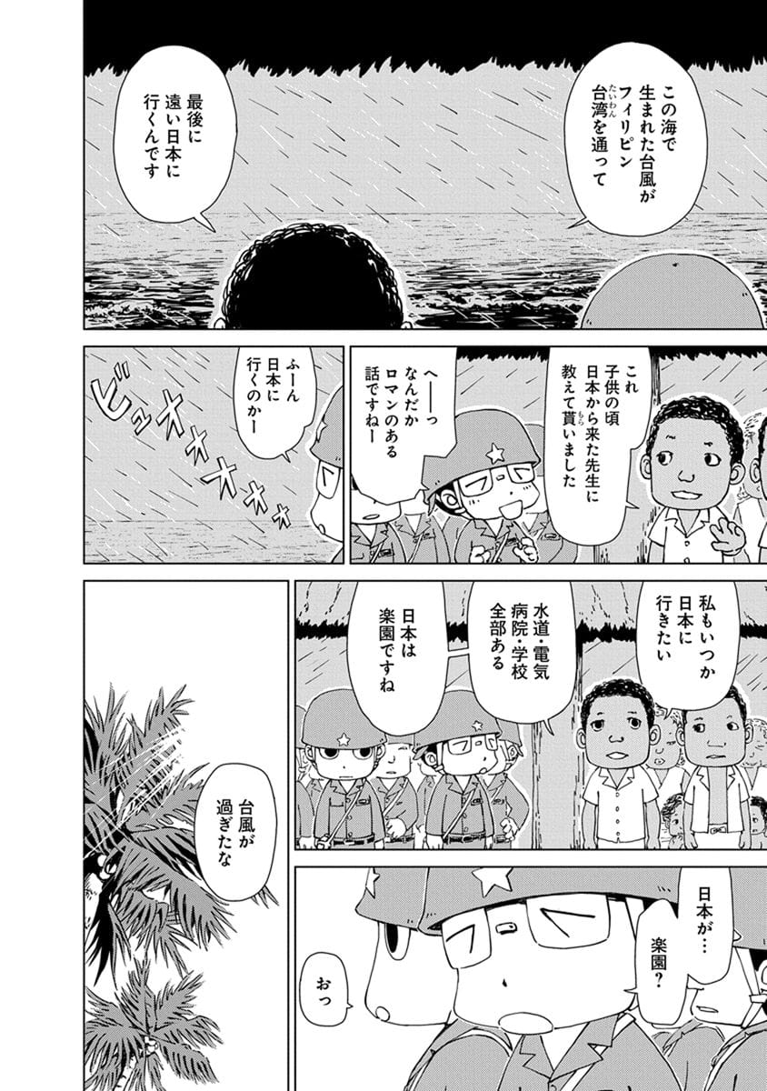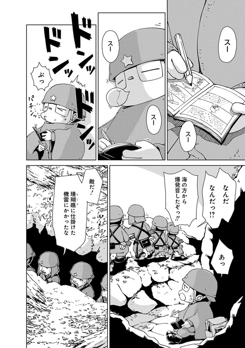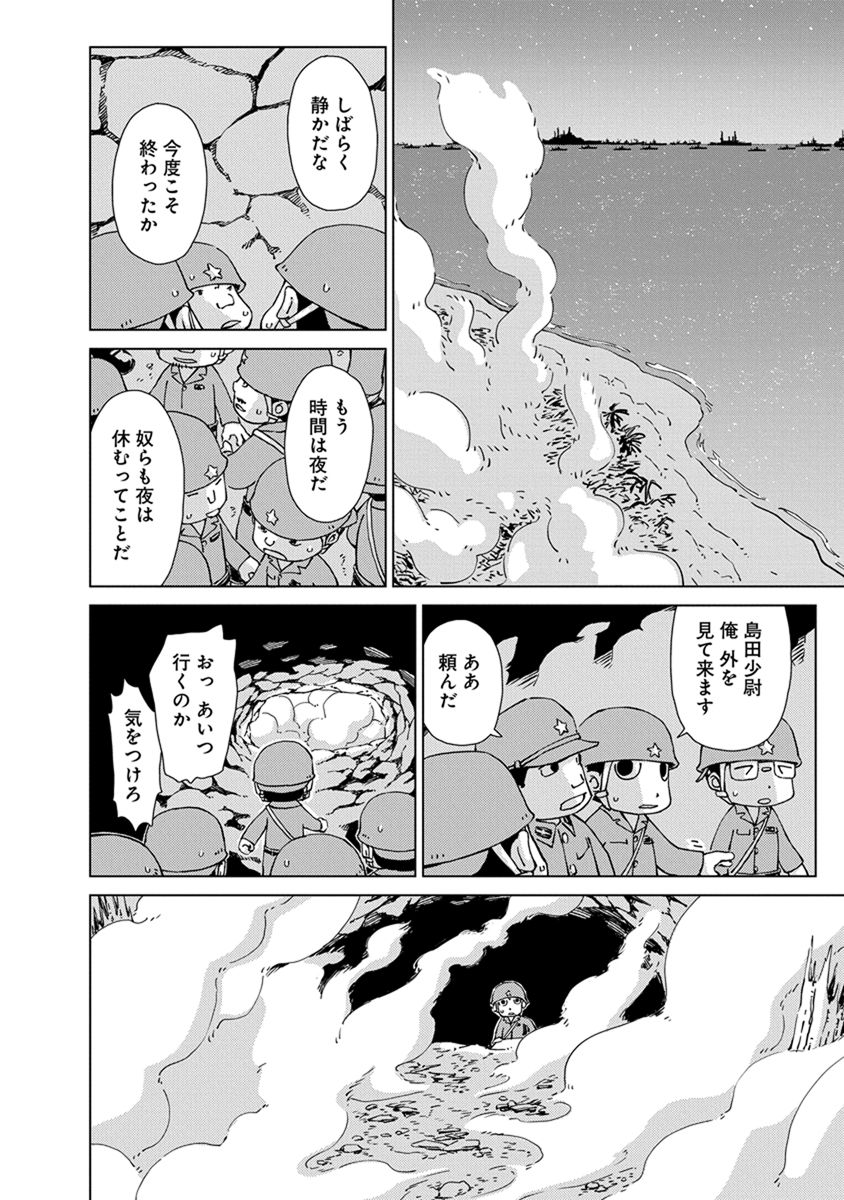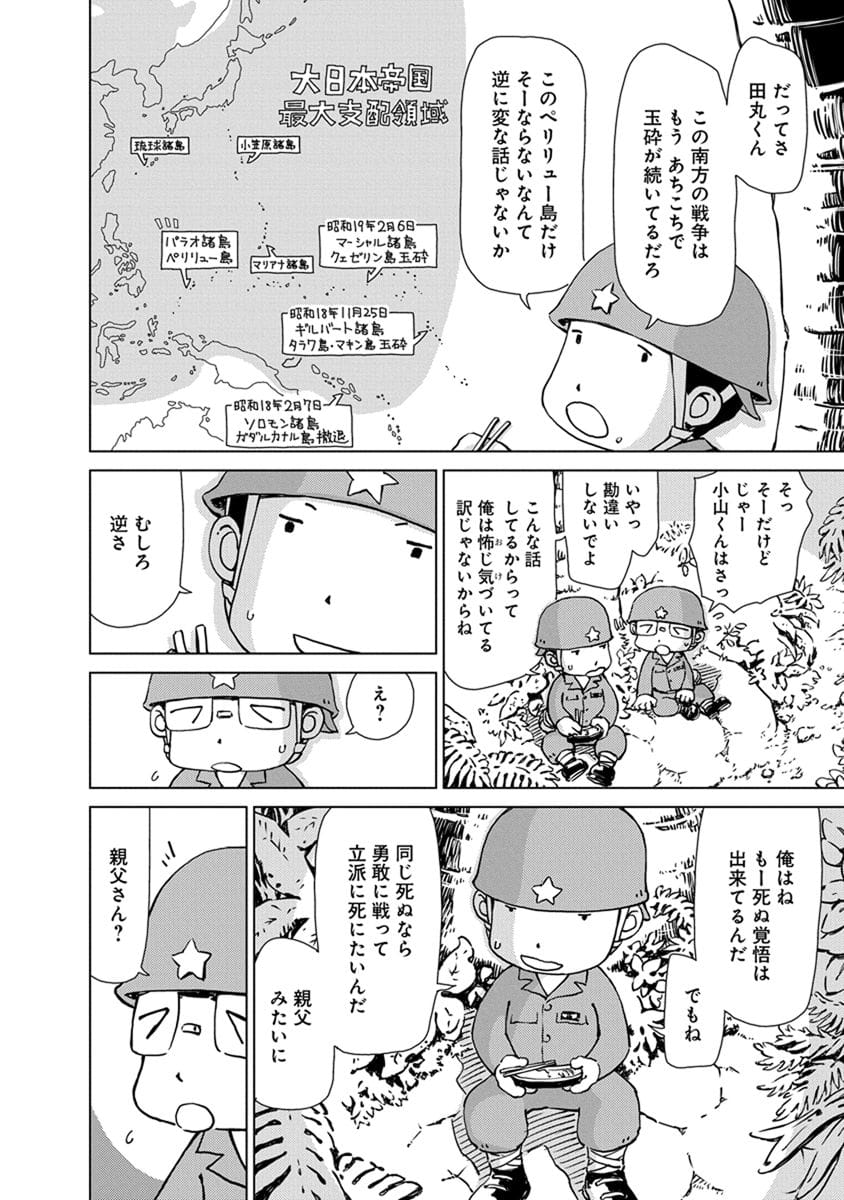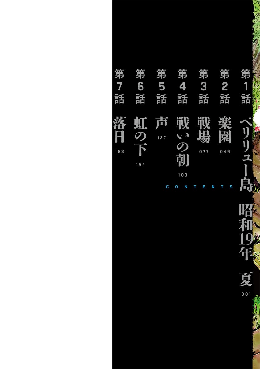 BOOK ペリリュー -楽園のゲルニカ- ペリリュー -楽園のゲルニカ- 第46回日本漫画家協会賞優秀賞を受賞し、太平洋戦争末期のパラオ・ペリリュー島での激戦を描いた人気漫画『ペリリュー ― 楽園のゲルニカー』が、ついにアニメーション映画として 2025年12月5日(金)から全国公開になりました。貴重な原作マンガ第一巻を、期間限定で公開します。映画の感動をもう一度味わいたい方も、これから映画をご覧になる方もぜひご一読ください。 BOOK一覧 掲載作品に関しましては、 予告なく配信終了となる場合がございますので、ご了承ください。