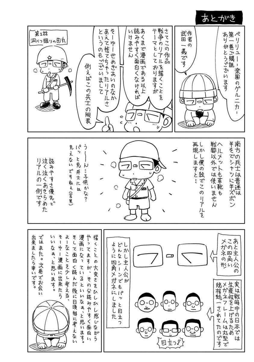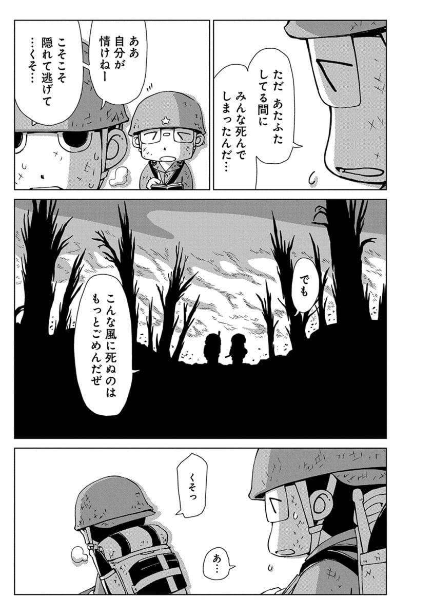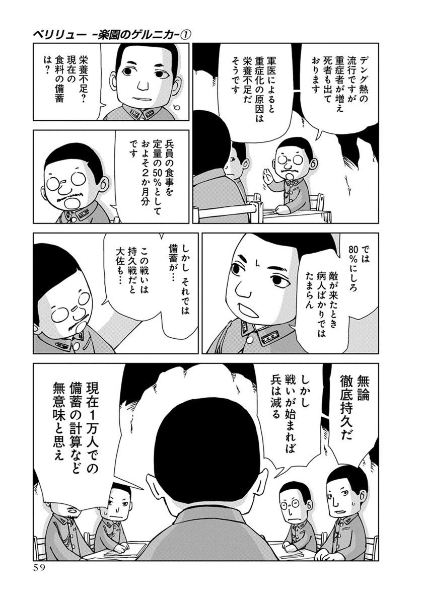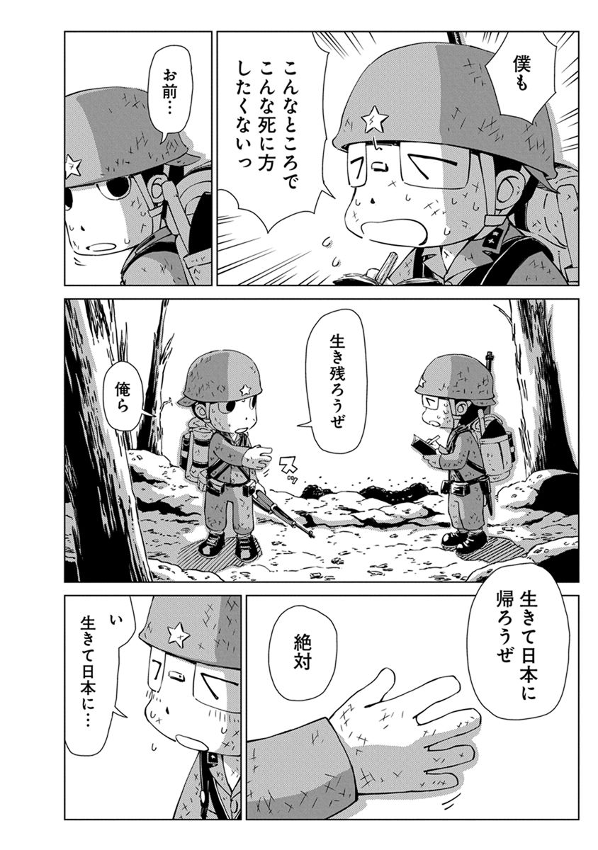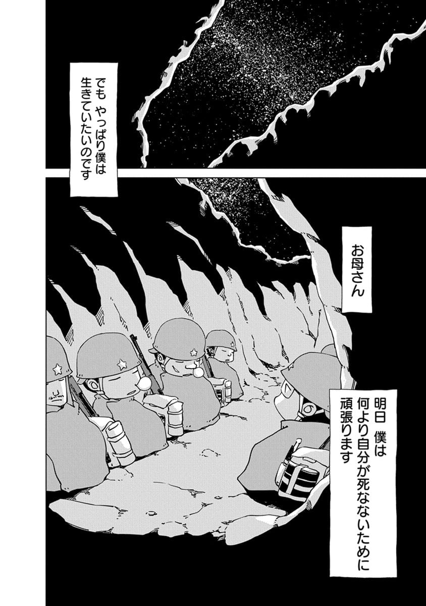 BOOK ペリリュー -楽園のゲルニカ- ペリリュー -楽園のゲルニカ- 第46回日本漫画家協会賞優秀賞を受賞し、太平洋戦争末期のパラオ・ペリリュー島での激戦を描いた人気漫画『ペリリュー ― 楽園のゲルニカー』が、ついにアニメーション映画として 2025年12月5日(金)から全国公開になりました。貴重な原作マンガ第一巻を、期間限定で公開します。映画の感動をもう一度味わいたい方も、これから映画をご覧になる方もぜひご一読ください。 BOOK一覧 掲載作品に関しましては、 予告なく配信終了となる場合がございますので、ご了承ください。