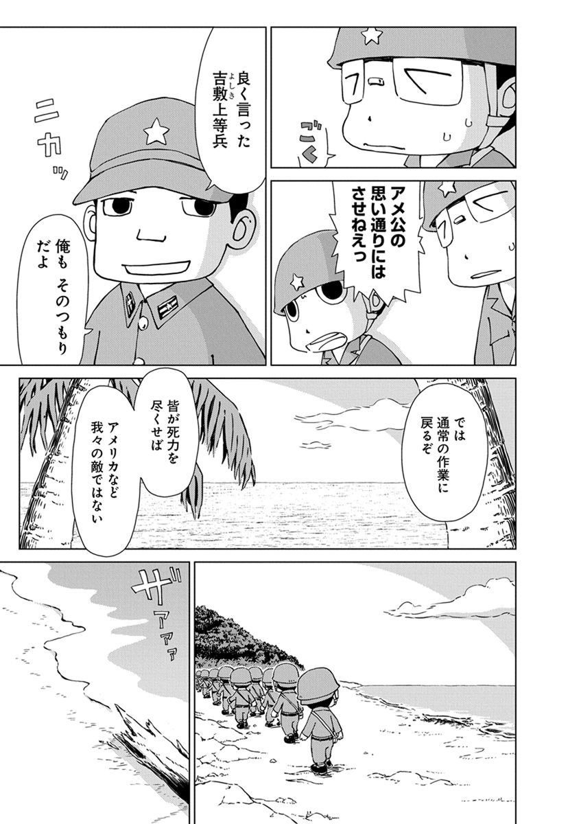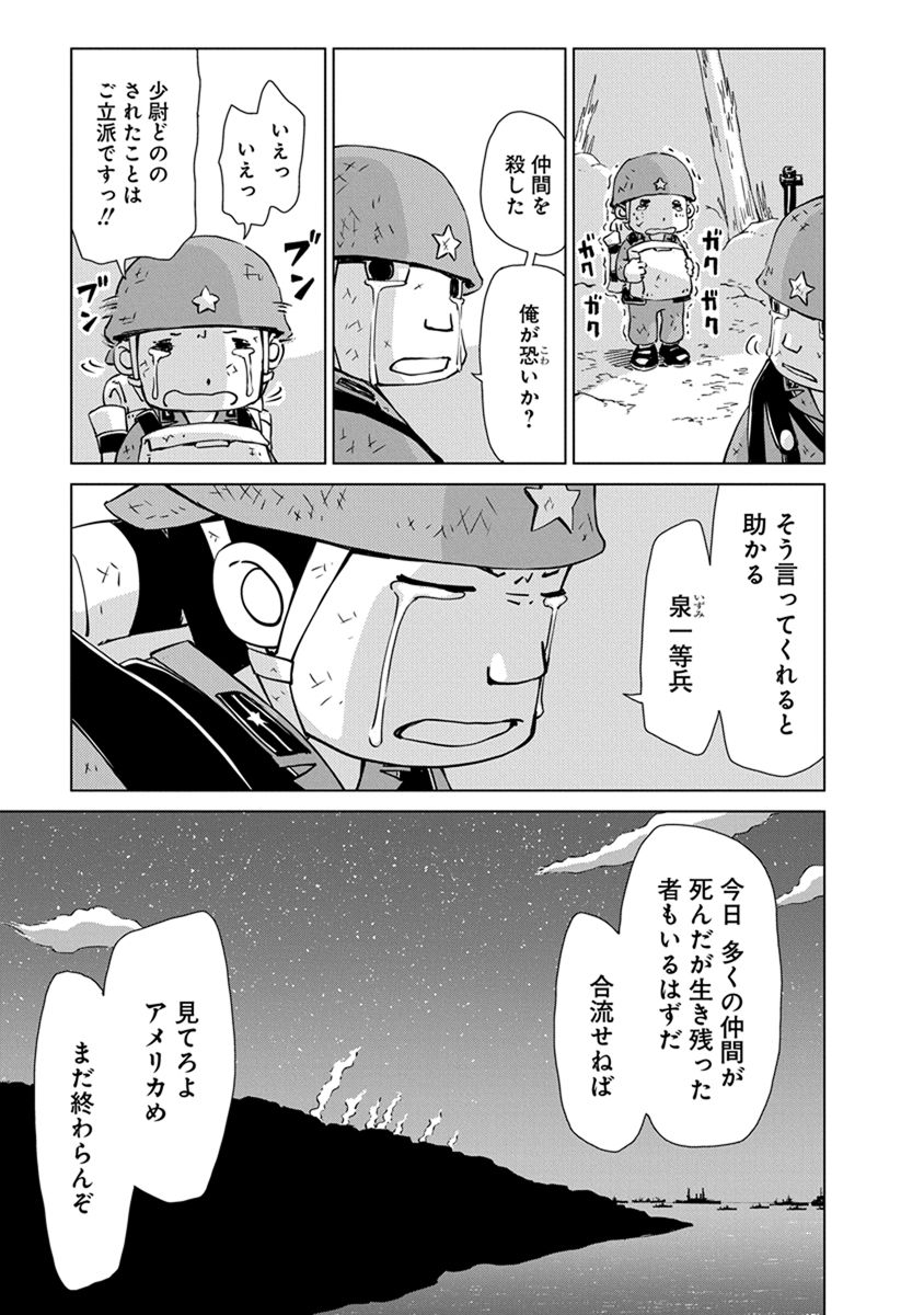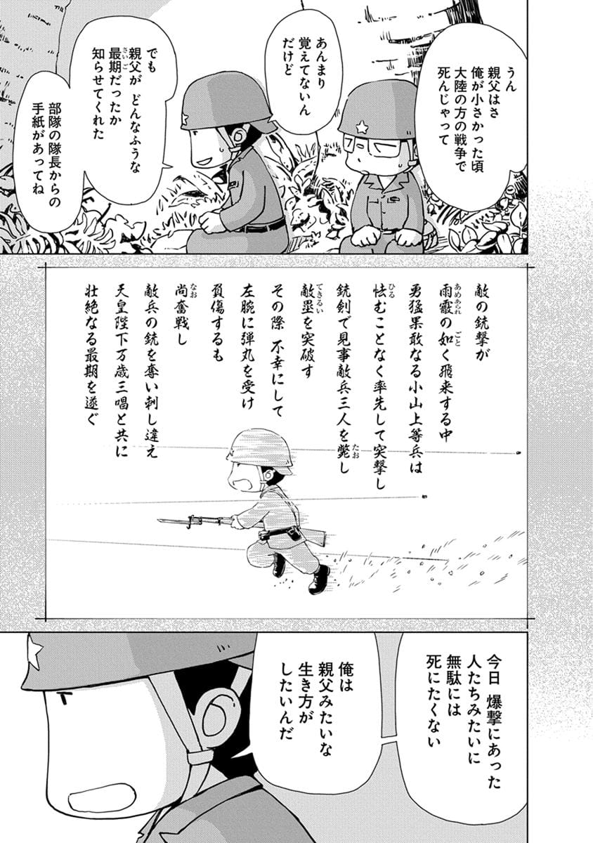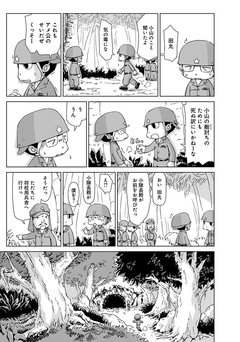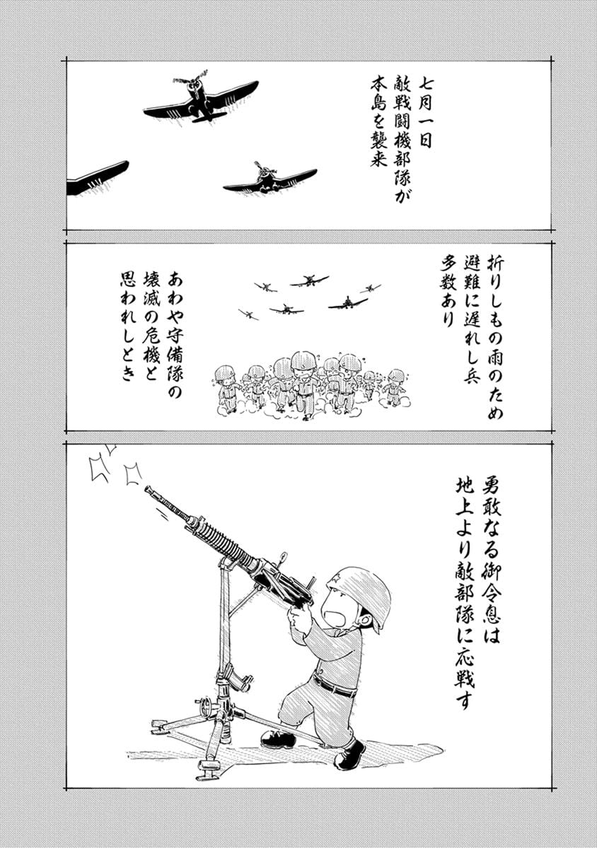 BOOK ペリリュー -楽園のゲルニカ- ペリリュー -楽園のゲルニカ- 第46回日本漫画家協会賞優秀賞を受賞し、太平洋戦争末期のパラオ・ペリリュー島での激戦を描いた人気漫画『ペリリュー ― 楽園のゲルニカー』が、ついにアニメーション映画として 2025年12月5日(金)から全国公開になりました。貴重な原作マンガ第一巻を、期間限定で公開します。映画の感動をもう一度味わいたい方も、これから映画をご覧になる方もぜひご一読ください。 BOOK一覧 掲載作品に関しましては、 予告なく配信終了となる場合がございますので、ご了承ください。