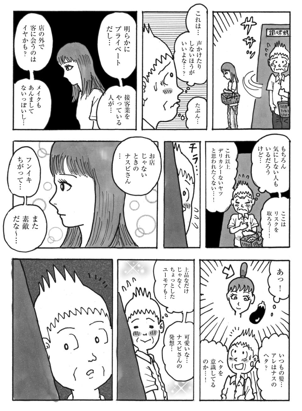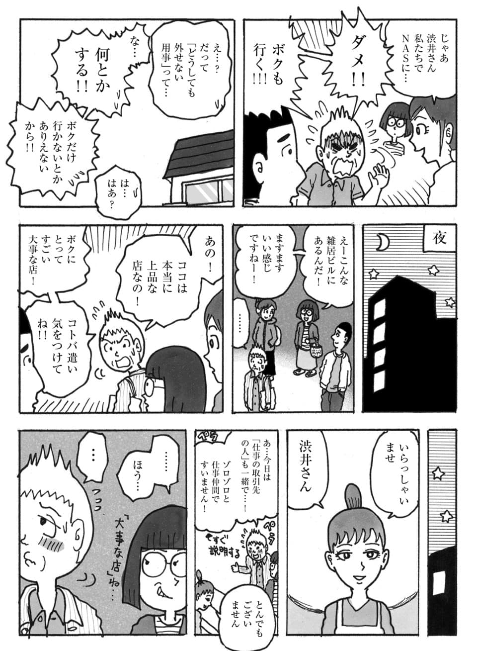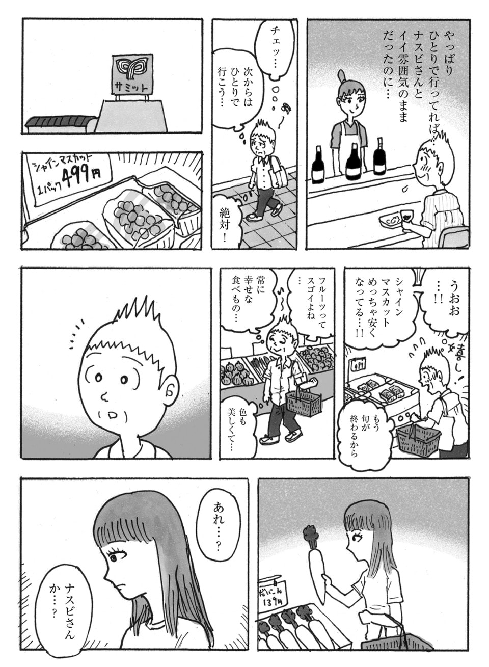ナス料理専門店を切り盛りする上品でミステリアスな女将「ナスビ」さんをすっかり気に入り通い詰める渋井さん。後日アレグリと杉浦くんを連れていくも、雰囲気にそぐわない若者二人の語彙が炸裂!? それを見た女将さんの笑顔の真意が読めない渋井さんは内心ヒヤヒヤ…