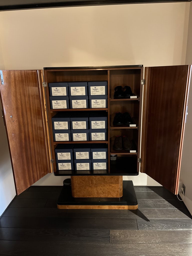 イギリスのシューズブランド【サンダース】とコラボしたシューズとストックが陳列したインテリアも素敵♡