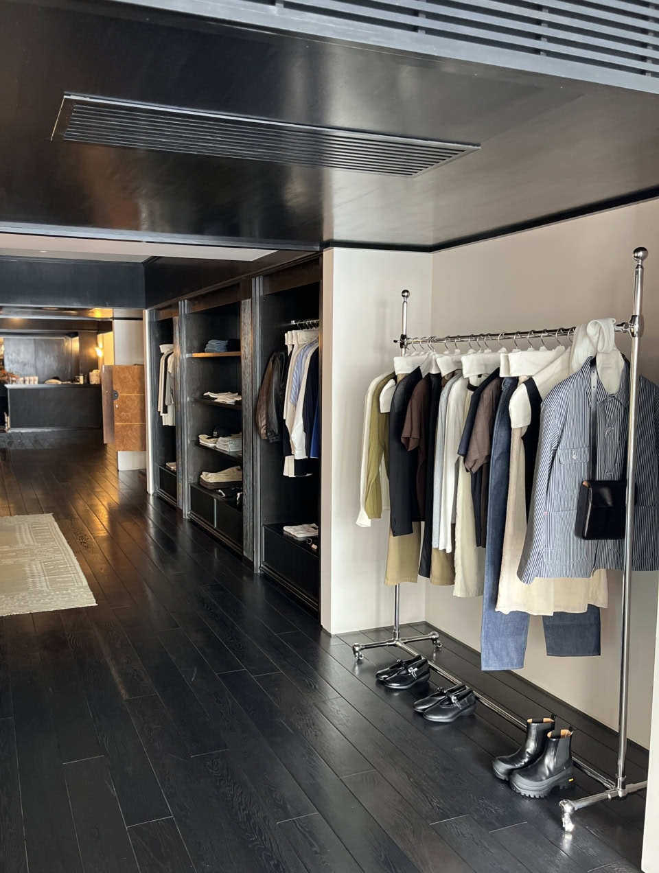 店内はゆっくりショッピングが楽しめるようになっていて、あらゆる面においてかなり余白があるなと感じました。アイテムの並べ方にも余裕がありますし、一点一点をしっかり見てほしいという意図があるかのよう。アンティークのインテリアの配置も絶妙で、アランさんはこういったセンスも抜群なんだな、と改めて思いました。