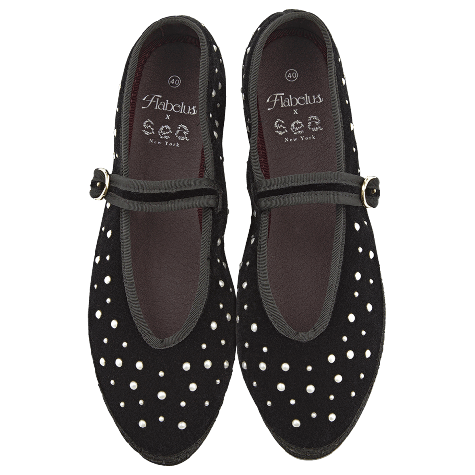 パールが輝くメリージェーンは、伝統的かつサステナブルなエスパドリーユで人気を博すフラベルスとの注目コラボ。