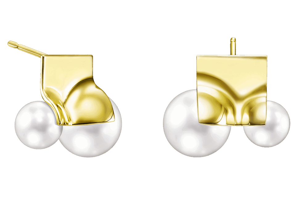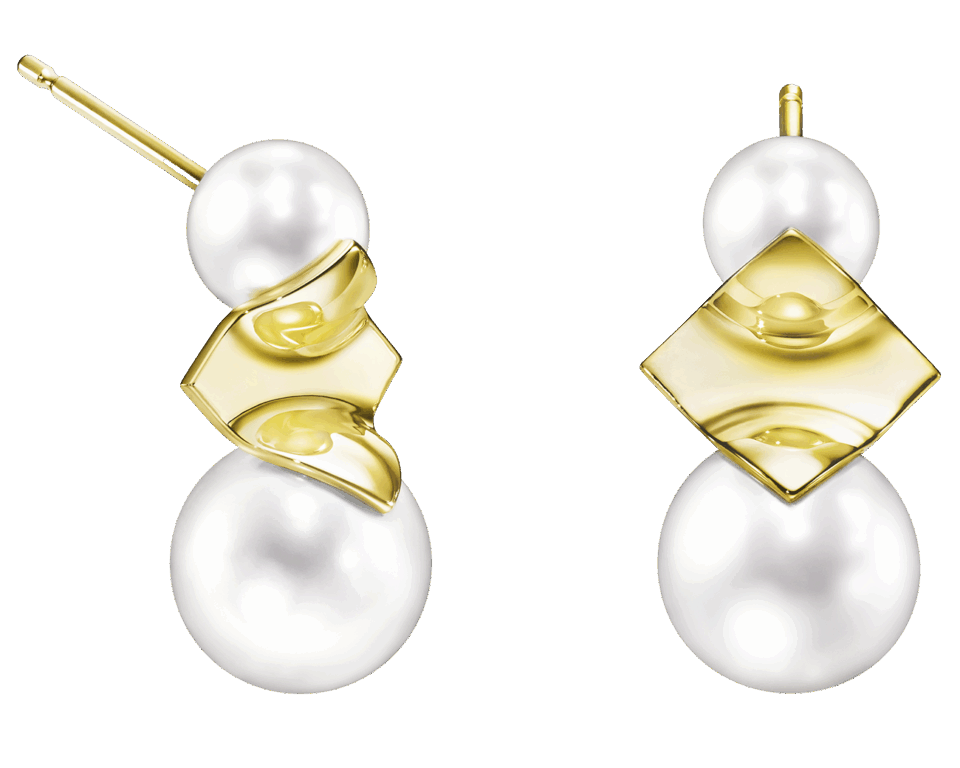 イヤリング〈スクエアリーフ〉[18Kイエローゴールド× 淡水真珠] ¥429,000(TASAKI)