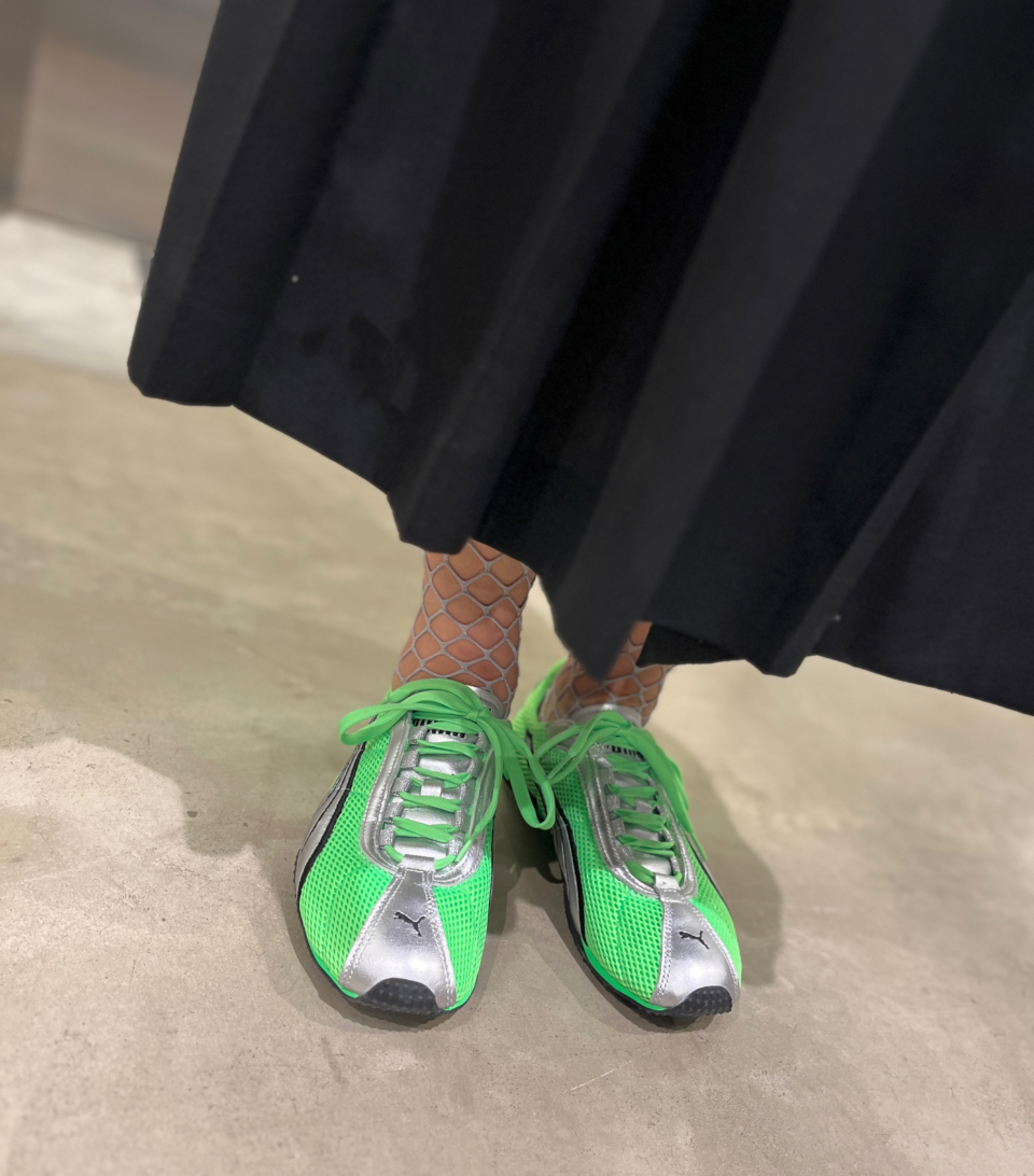 派手なスニーカーってどう取り入れるか悩むところですが、これは意外と合わせやすかったです。ただ、デニムは色やシルエットによっては野暮ったく見えたので(筆者の合わせ方が悪かったかも)、個人的にはスカートやスラックスと相性がいいと思いました。