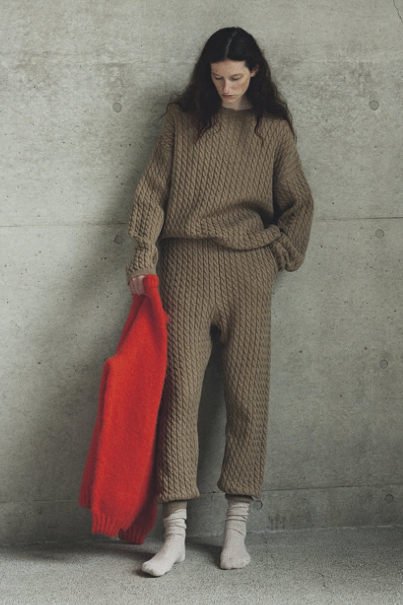 ニット¥29,700、パンツ¥27,500(ビヨーマ)