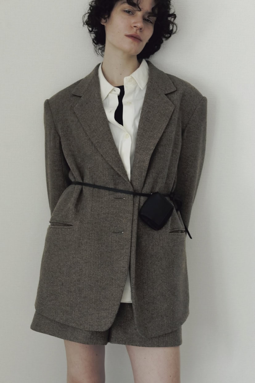 ジャケット¥24,200、シャツ¥13,200、ショーパン¥14,300(アンヌーク/アンヌーク オンラインストア)