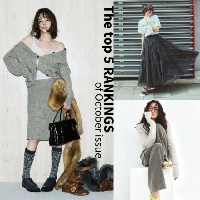 「それどこの?」って聞かれたい! をテーマにしたオトナミューズ10月号は、ファーにレース、デニムやヴィンテージなど、思わず「それどこの?」と聞かずにはいられないような、注目のアイテムが満載の1冊に。読者アンケートの結果、梨花さんの着るミュウミュウをはじめ、どこか甘さただようカジュアルスタイルを中心に注目を集めました。お気に入りの着こなしを探しながらじっくり読んでみてくださいね。
