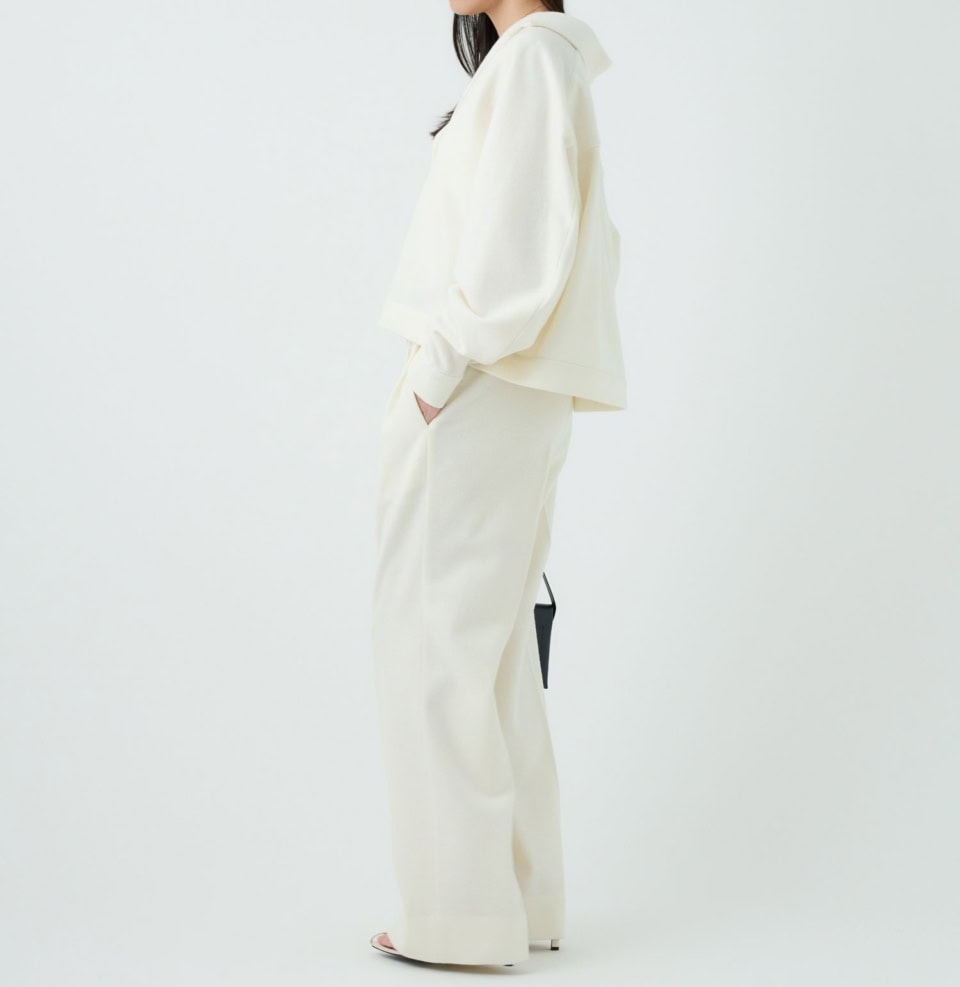 今季のバランサーシリーズはアイボリーとチャコールの2色展開。ジャケットとパンツの他に、こちらで着用しているスキッパータイプのプルオーバーもあります。バランサールームプルオーバー¥45,100