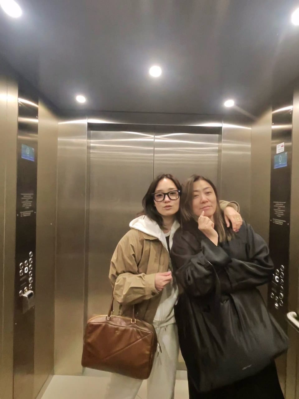 行きの機内スタイルがこちら。上下スウェットのメガネですっぴんなのに、ここまでおしゃれでかわいいなんて♡