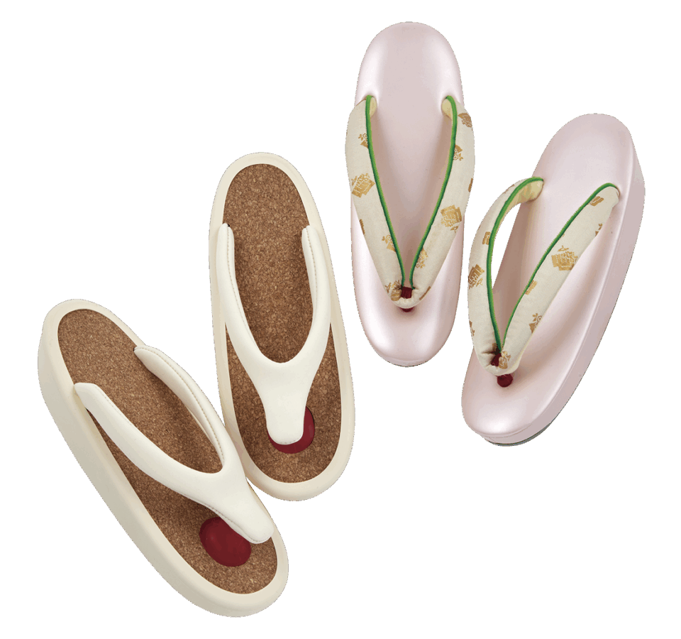 白サンダル¥30,800(OJOJO NAITO/祇園 ない藤)、ピンクサンダル¥110,000(祇園 ない藤)