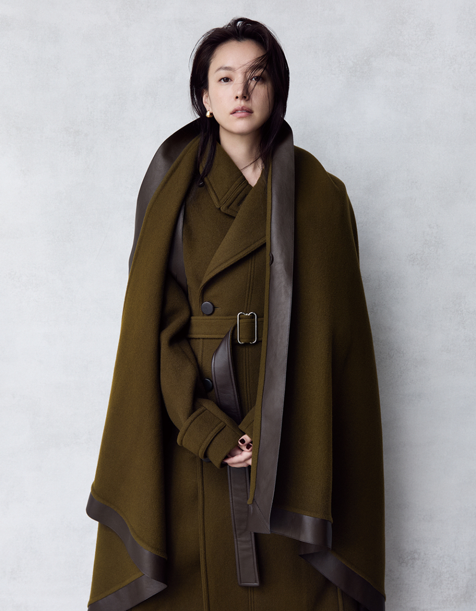 ケープ¥762,300、コート¥663,300(共にトッズ/トッズ·ジャパン)、イヤリングはスタイリスト私物