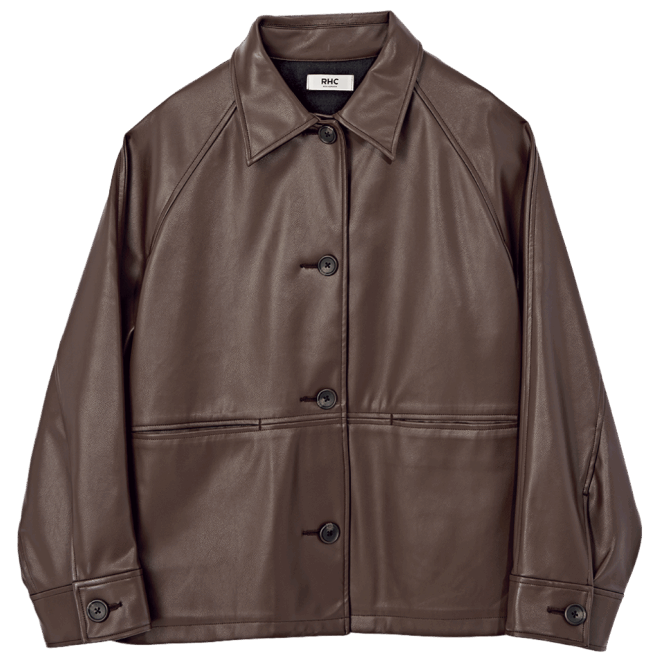 「ボクシーなシルエットが印象的なエコレザージャケットは、今季らしいブラウンが狙い目。ラグランスリーブが肩のカーブに沿うデザインで、羽織るととても可愛いんです!」RHC ロンハーマン PR・林安奈さん