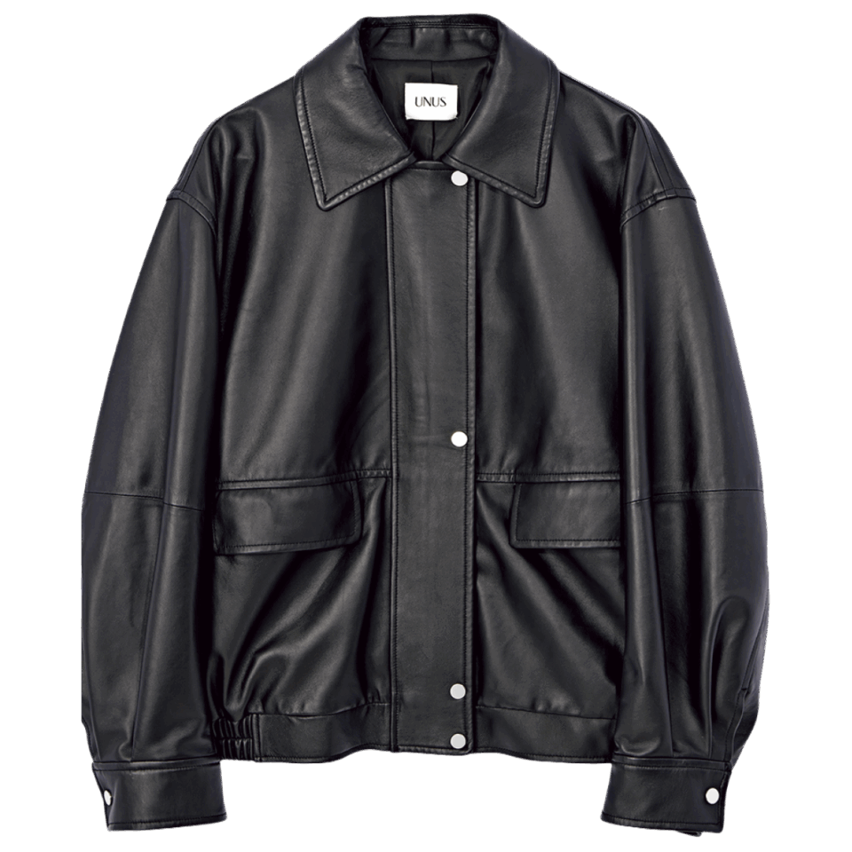 「マニッシュなディテールが特徴のレザーブルゾン。柔らかなラムレザーを使用しているので、着るほどにからだになじみ、トレンドと関係なく、長く愛用していただけると思います」UNUS PR・水谷優芽さん