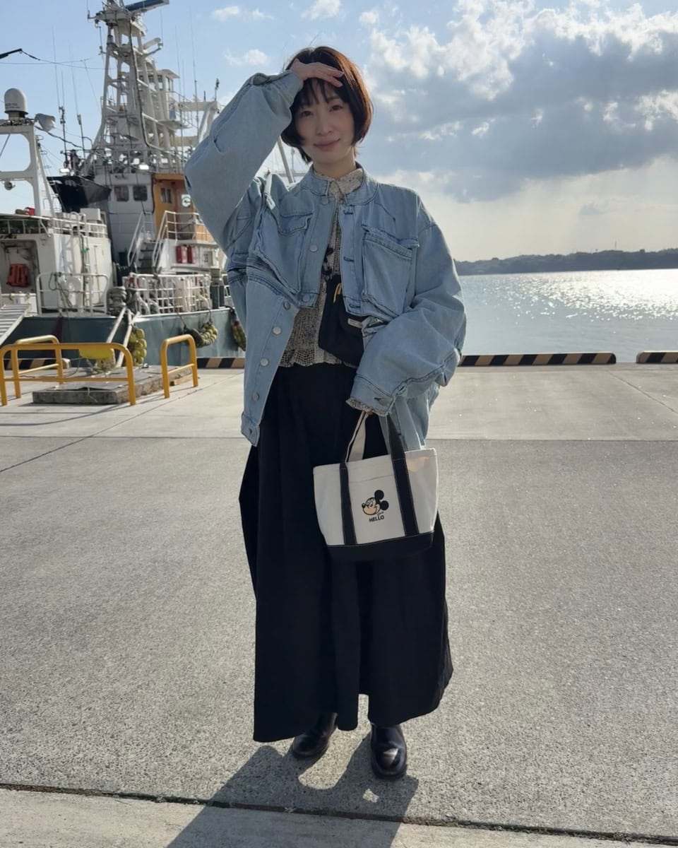 「デニムに似合う上質なカジュアル」という、シンゾーンのコンセプトに合わせてGジャンを着用してみました。キャンバス生地とカジュアルコーデは相性抜群。ミッキーの刺繍がワンポイントでかわいい♡