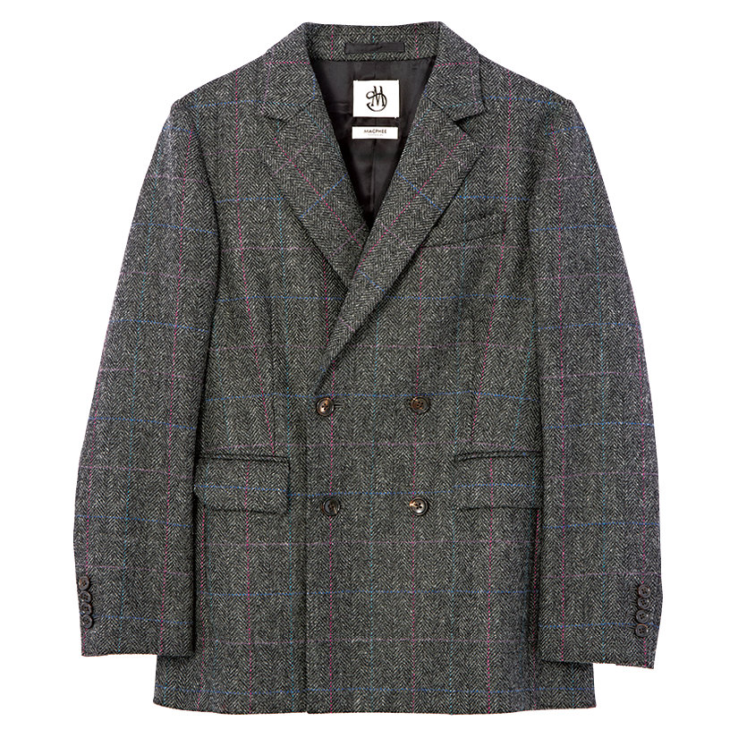 「このジャケットは形がキレイで何にでも合わせやすいダークグレー。重宝するはず」。グレージャケット¥71,500(マカフィー/トゥモローランド)