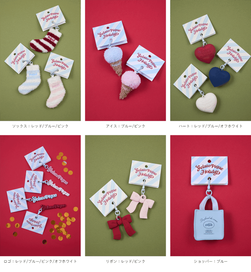 <チャーム (ソックス、アイス、ハート、ロゴ、リボン、ショッパー)各¥1,430:単品販売>