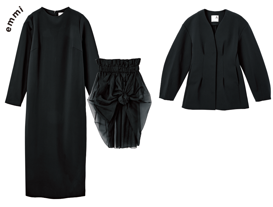 ジャケット¥35,200、ドレス¥39,600(共にemmi 表参道ヒルズ店)
