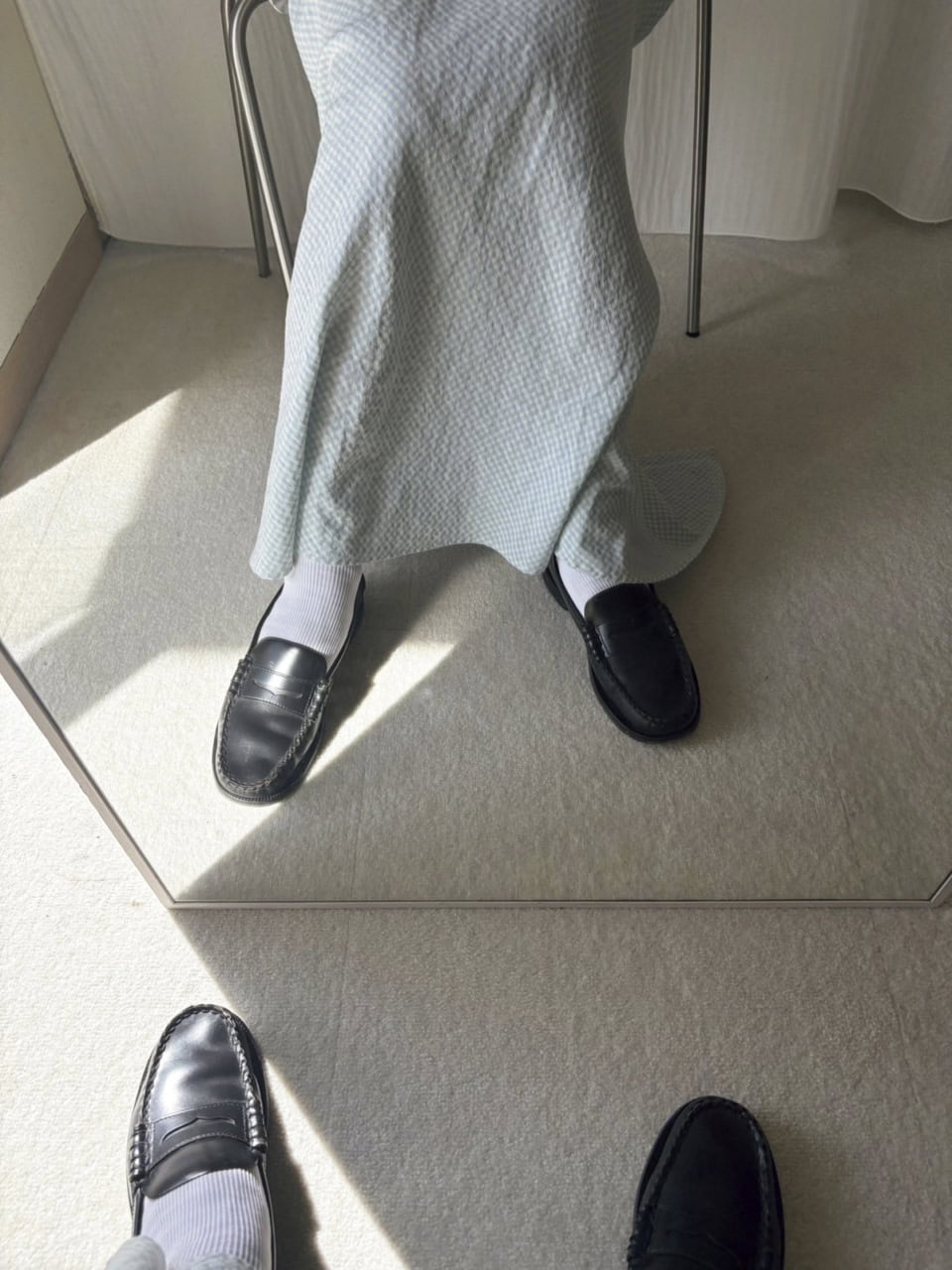 ジェーン・バーキンのバーキンみたいな存在(笑)! ずっと同じものを着てる人って好きなんですよ。その人といえば! みたいなアイコニックなスタイルが確立されている気がして。ローファーが私にとってそういうポジションであってくれたらいいな。本当に大好きで、ビーサンの季節以外は1年中はいてます。