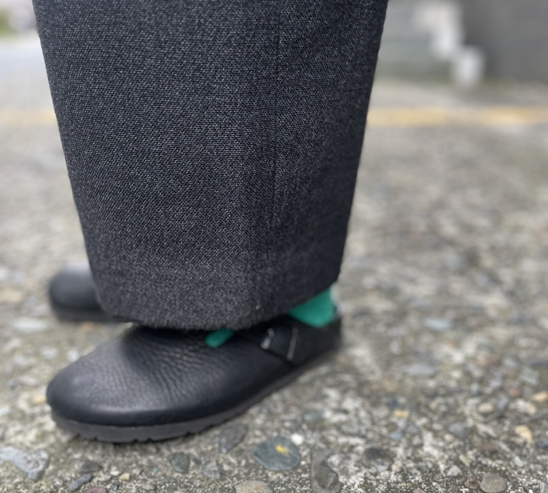 鮮やかなグリーンのモヘアソックスを差し色に投入。こういったディテールも手を抜かないのは、さすが安武さんですよね