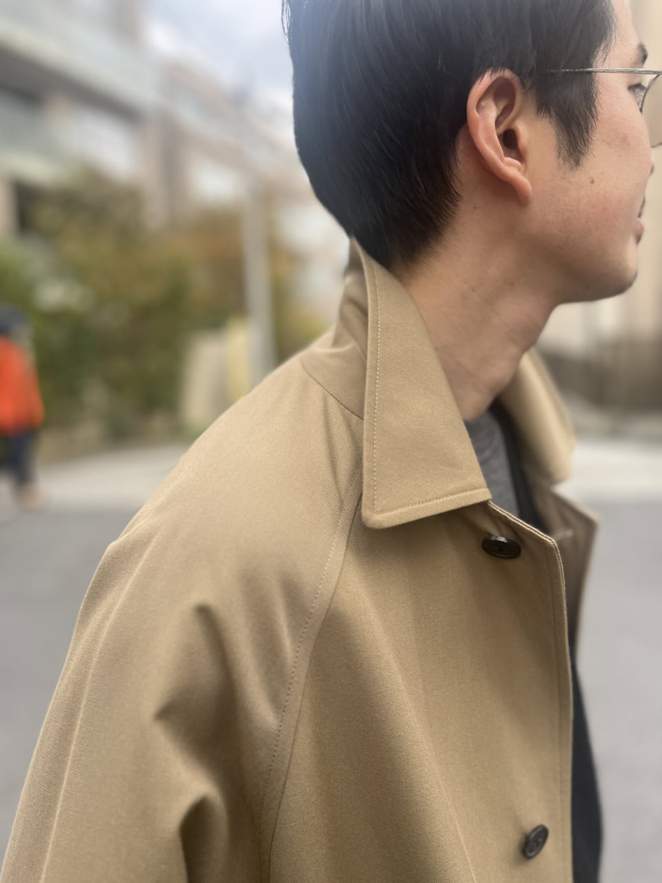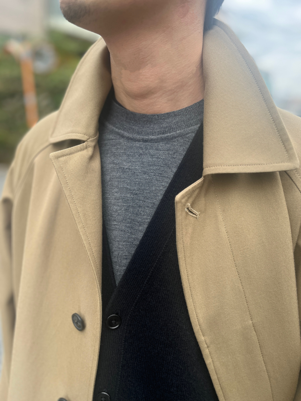 アウターは毎シーズン購入するという井上さんがこの冬選んだのは、 2023年にデビューした【メゾン エ ヴォヤージュ】の一着。「ブランド定番のステンカラーコートはボディや肩まわりがゆったりしていて、オーセンティックなデザインながら今っぽく着こなすことができるんです」