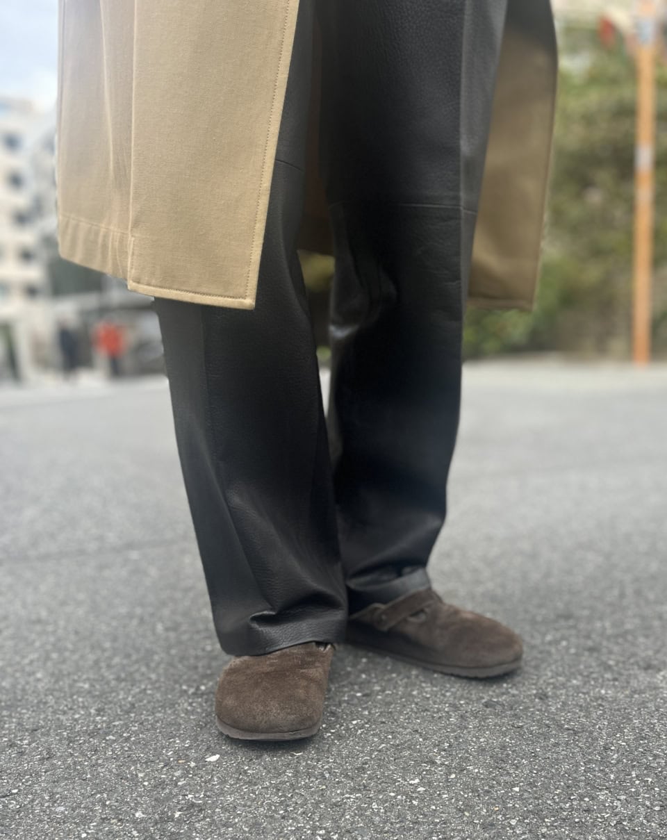 ゴートレザーのパンツとの素材のコントラストも絶妙なスパイスになっていますし、風合いの異なる素材をMIXするのが本当にお上手。井上さんの着こなしを見ていて、「シンプルだけど洒落ている」ってこういうことだよな、と改めて思いました。自分らしさを出したという小物づかいもお見事でしたし、まるっと真似したいかも!