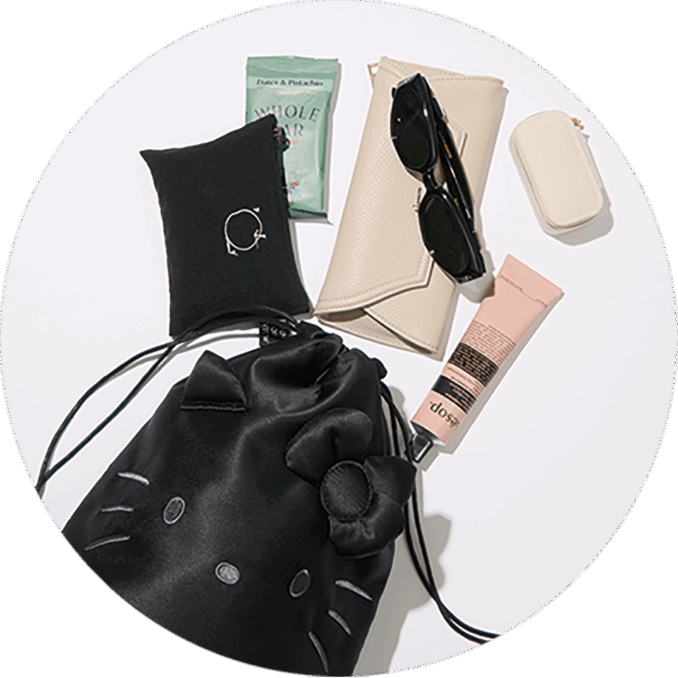 長財布やポーチ、スマートフォンなど、お出かけに必要なアイテムがしっかり収納できる。