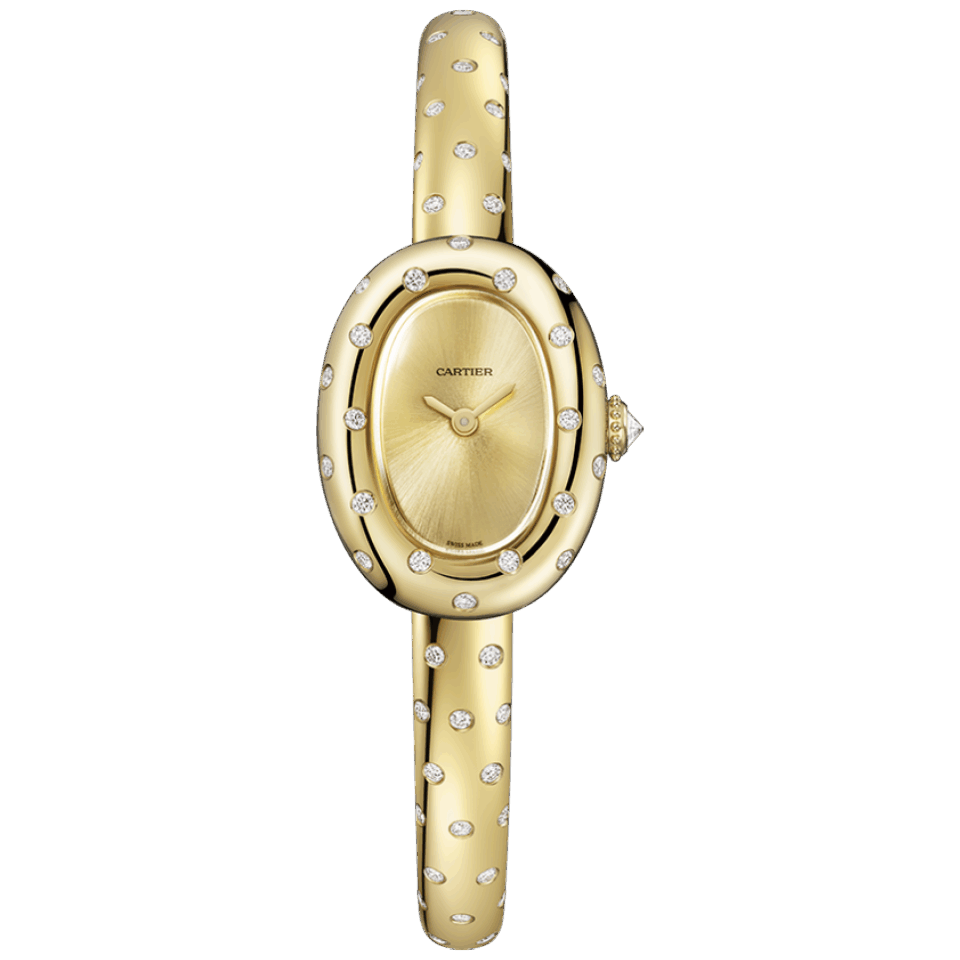 時計〈べニュワール〉[YG×DIAH24.6×W18.7mm、クォーツムーブメント]¥3,828,000(カルティエ/カルティエ カスタマー サービスセンター)