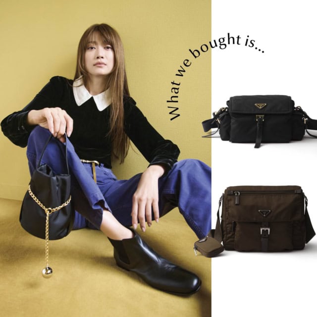 みなさんがプラダの中で愛用していると答えたのはナイロンバッグ。軽くて持ちやすいのはもちろん、カジュアルからキレイめまでどんなスタイルにも合わせやすいのが人気の理由。トートやショルダーのほか、巾着バッグも愛用者多し。レザーハンドルと球体ペンダントがアクセントになった新作のバケットバッグにも注目したい。