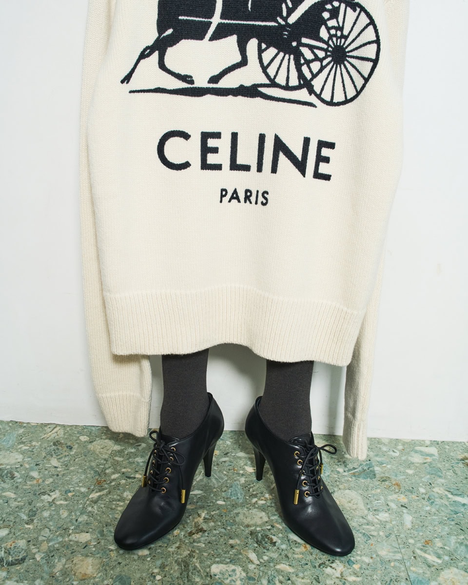 シューズ[ヒール9㎝]¥209,000、ニット¥286,000 ※共に予定価格(共にセリーヌ/セリーヌ ジャパン)