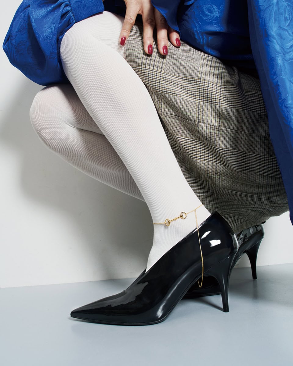 シューズ[ヒール8.5㎝]¥203,500、ブラウス¥429,000、スカート¥209,000(全てグッチ/グッチ クライアントサービス)、タイツはスタイリスト私物