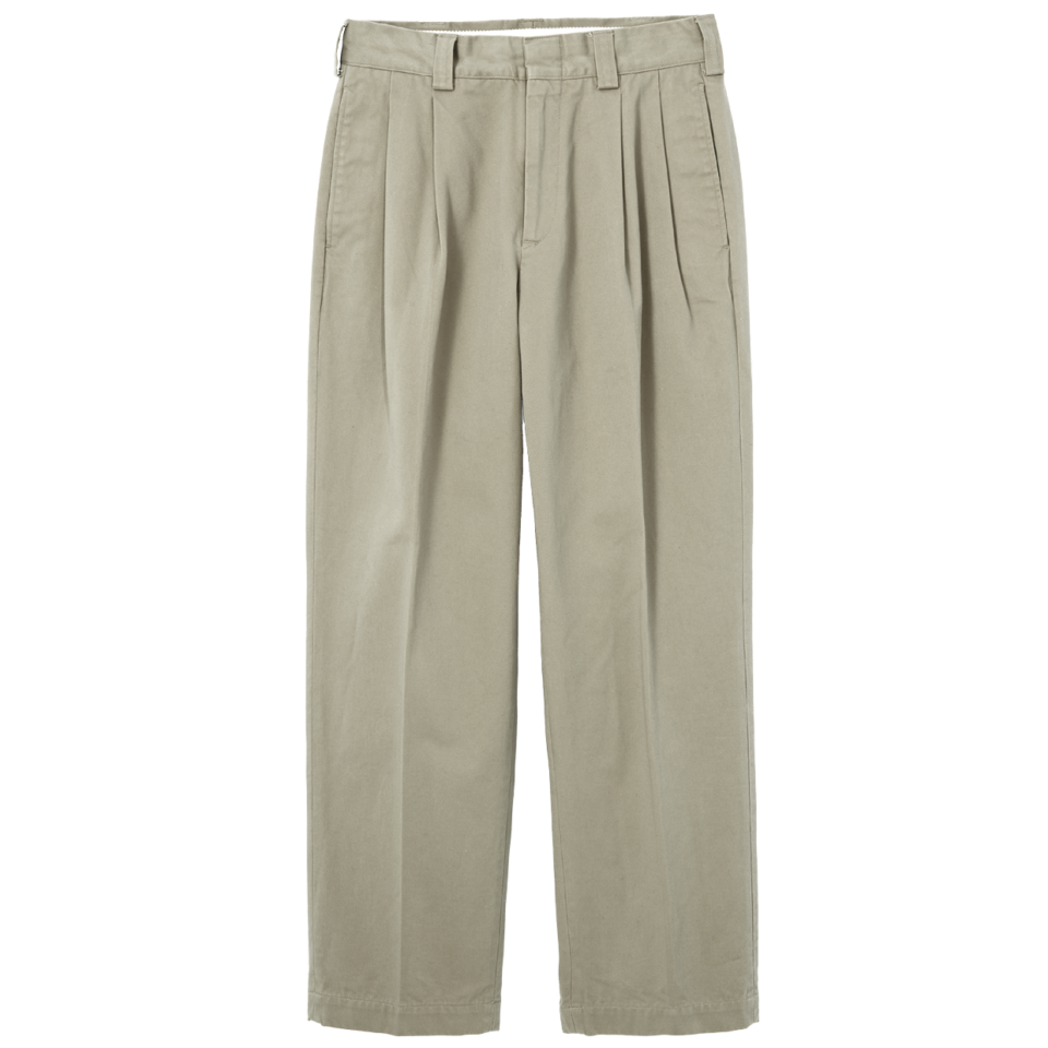 タック入りの太めストレートは、きちんと感もありスラックス感覚ではけます。クリーンな見た目と、オーセンティックな佇まいは、タートルネックにシャツ、首元にはスカーフ、といったトラッドならではの重ね着を楽しむのに最適。