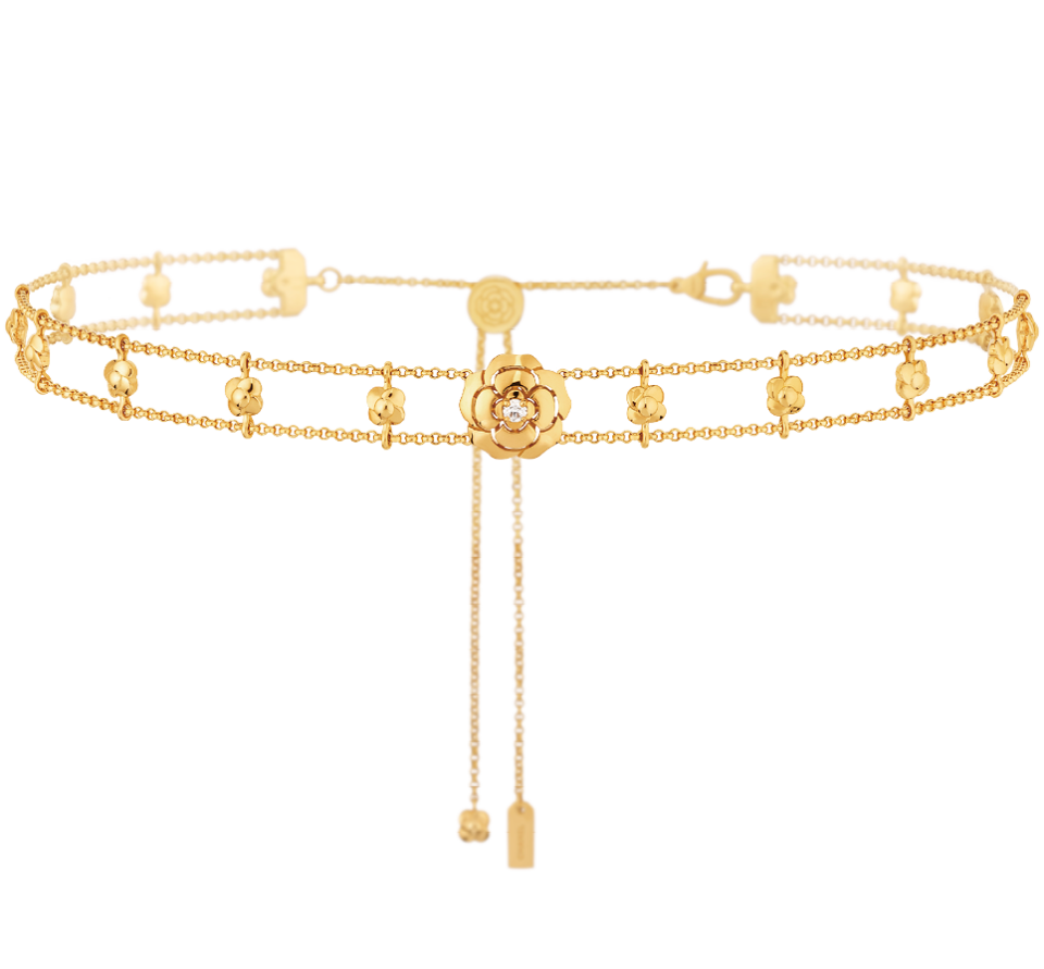 マドモアゼル シャネルのスタイルを象徴するモチーフとして、メゾンの重要なコードのひとつであるカメリアの花。それをジュエリーに昇華させた人気コレクションで狙いたい新作は、ミニマルなゴールドの花の中央にダイヤモンドをあしらったチョーカー。繊細でいて存在感たっぷり。