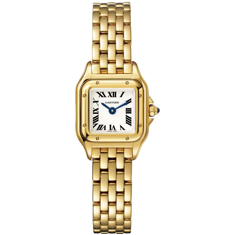 「カジュアルの引き締め役に」時計〈パンテール ドゥ カルティエ〉[K18YG、H25×W19mm]¥3,603,600(カルティエ/カルティエ カスタマー サービスセンター)