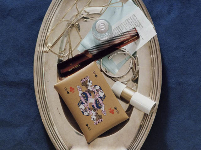〈カルヴィデュオ コンパクト〉[H10.5×W7cm/札入れ0、小銭入れ1、カードスリット1、ポケット0] ¥136,400、リップバーム¥9,240、ピアス¥247,500(全てエルメス/エルメスジャポン)、その他はスタイリスト私物