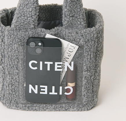 3月号増刊の付録は、ころんとしたスクエア型が可愛いクリアポケット付きボアバッグ。ふわふわのボア素材を使ったボリュームが冬のスタイリングにぴったりです。ポイントは前面につけたクリアポケット。ほっこりしがちなボアにあえてクリア素材を重ねることで、CITENらしい捻りのきいたバランスに仕上げました。リップや小物を見せて収納することもできますよ。マチがしっかりあり、サイズ感も普段のお出掛けにちょうどよく実用性も抜群。